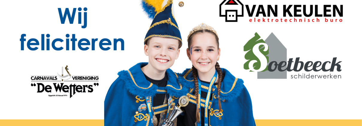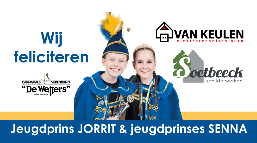 Wij feliciteren Jeugdprins Jorrit en jeugdprinses Senna van CV de Wetters