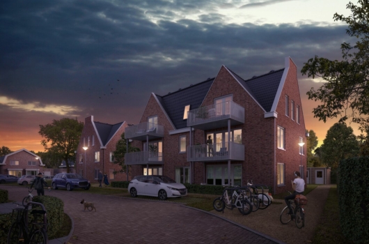 De appartementen zijn verdeeld over vijf verschillende gebouwen, wat zorgt voor variatie en een prettige, menselijke schaal. De bebouwing wordt zorgvuldig ingepast in de bestaande wijk en vormt samen met het groene binnenterrein een aangename leefomgeving. Op het binnenterrein komt een gezamenlijke buitenruimte met een combinatie van groen en een aantal parkeerplaatsen.