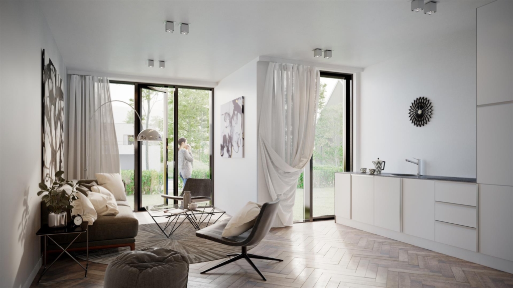 De huurappartementen zijn woonstudio’s en maisonnettewoningen. Ze beschikken over een buitenruimte in de vorm van een balkon, binnentuin of dakterras. Het plan is voorzien van een binnenterrein welke wordt ingericht als gemeenschappelijke binnentuin.